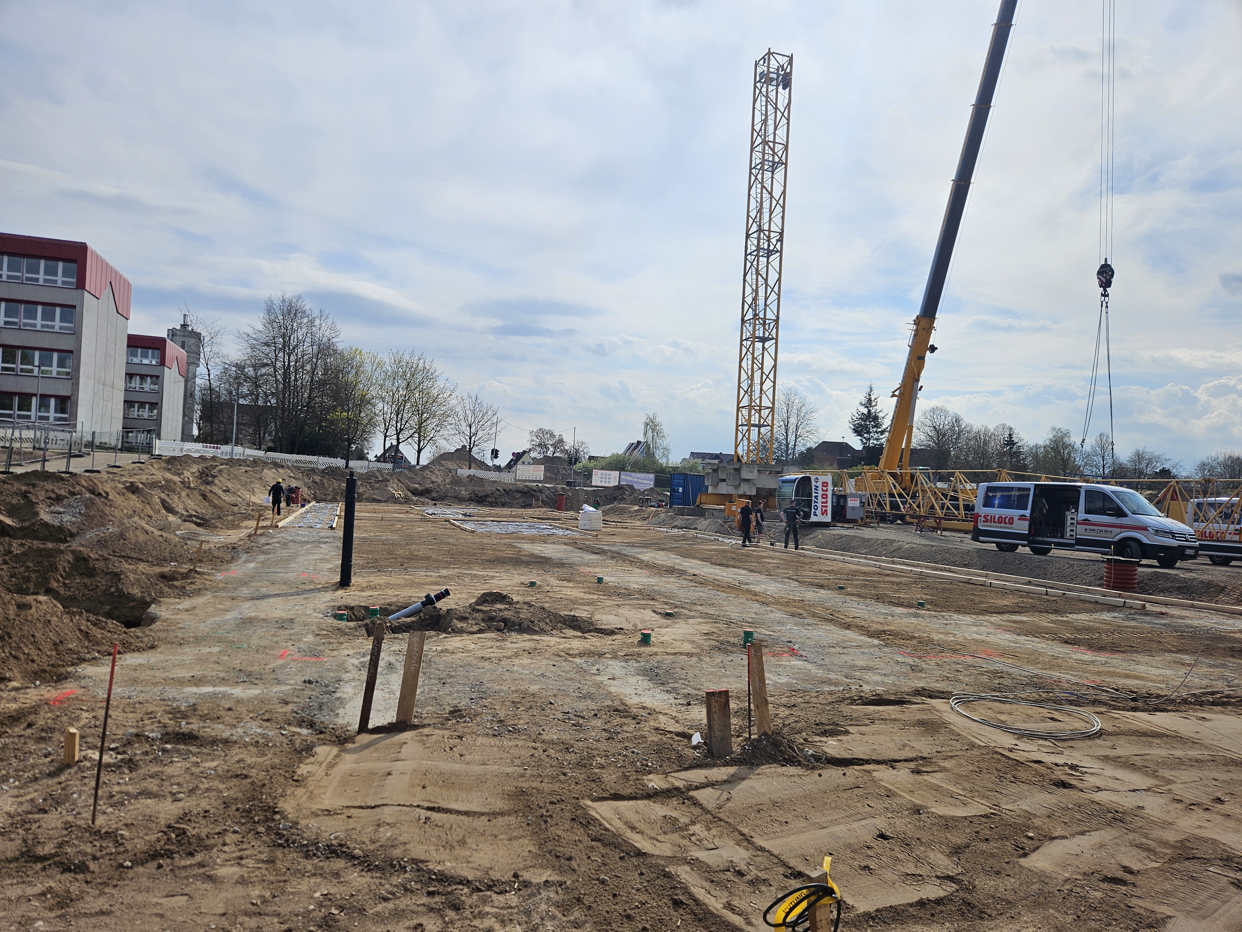 Schon gut zu erkennen sind auch die ersten Fundamente der Grundschule in Verlängerung der Regionalen Schule.